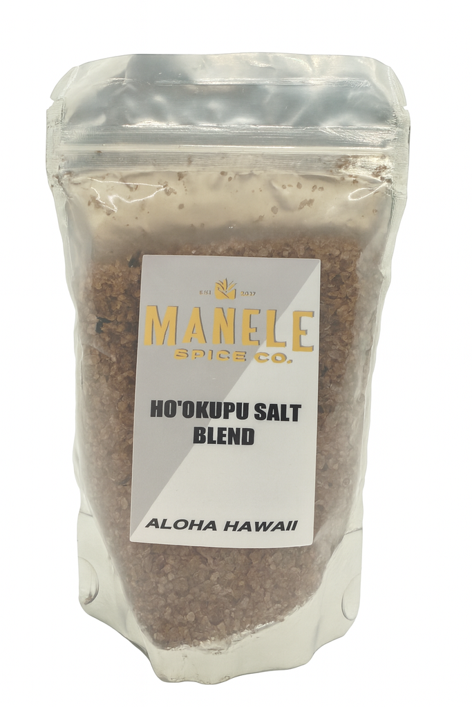 Elevate every dish with the bold Mānele Spice Co.’s Ho‘okupu Salt Blend. Handcrafted in Hawai‘i, this 7 oz pouch features a unique mix of premium Hawaiian sea salt — a true ho‘okupu (offering) of flavor to your table.