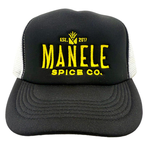 Keep it cool and classic with our Black and White Manele Spice Trucker Hat — featuring the bold Mānele Spice logo, breathable mesh back, and adjustable snapback fit. Perfect for everyday wear, beach days, or grilling up something ono.